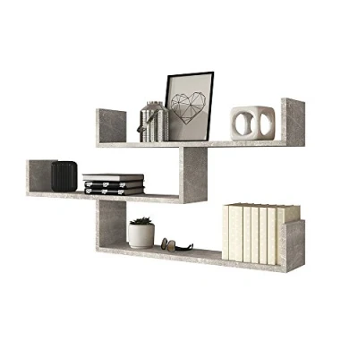 SELSEY KASSI 3 Level Floating Shelf/Hanging Display Ledge/Decorative Wall Shelf/Concrete Grey