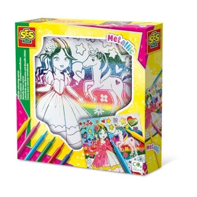 Cool metallic effect in multiple colours The printed colouring sheet on canvas makes colouring extra easy Real canvas, sturdy on cardboard No mess with paint Princess and unicorn theme, Manufacturer: SES Creative