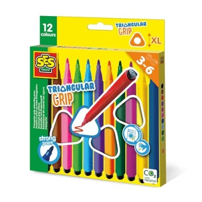 Draw with ease using SES Creative's Triangular Grip Colouring Pens, perfect for young artists. Includes 12 thick, triangular colouring pens with an ergonomic grip. Made from safe, non-toxic materials, suitable for children aged 3 and up. Promotes creativity and proper grip technique as kids color and draw. Great for early learning and artistic play, keeping kids entertained with colorful pens., Manufacturer: SES
