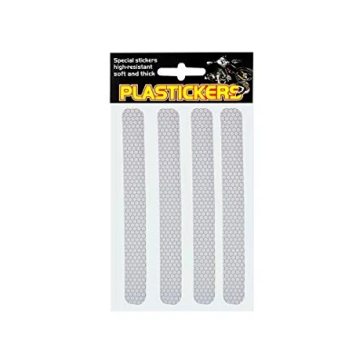 Super refractive stickers, plastic coated with a soft and thick vinyl. Protects from small abrasions. High-visibility increasing safety. Set of 2 pieces. Dimensions: 13,2 x 9,5 cm.