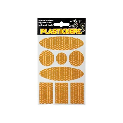 Super refractive stickers, plastic coated with a soft and thick vinyl. Protects from small abrasions. High-visibility increasing safety.
