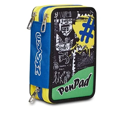 Seven Astuccio 3 Zip, CASE Zip Pen PAD , Blue, School