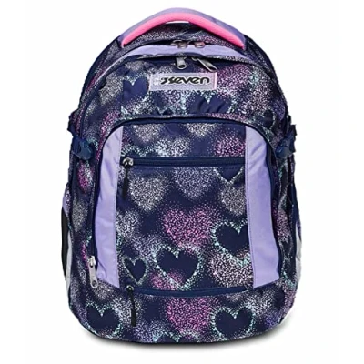 Seven Backpack, UPDOWN TWICE SHADING HEART Eco friendly Ergonomic Knapsack, For Teen Girls& Boys School, Sport, Free Time, with Side Pockets, many Compartments, Shoulder Straps Adjustment System