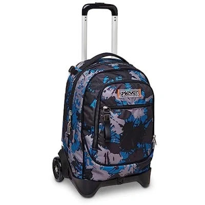 Dimensions: with structure: 38 x 50 x 26 cm - without structure: 32 x 45 x 20 cm; Capacity: 35 lt Shoulder straps: Padded and retractable when used as a trolley. Backrest: Padded and covered in fabric. Pockets: Front zip pocket. Features: Trolley decomposable with Crossover System, the system "saves shoulders" with clips for attaching tapes. 100mm wheels and double telescopic bar with two height adjustments, reinforced bottom and corner guards to ensure product stability and content protection. Anti-tipping feet. 3 POSSIBLE USES OF THE NEW TECH TROLLEY: 1) use trolley with full retractable shoulder straps in the back 2) Use backpack without unhooking the cart 3) Use backpack when completely unhooked from the cart. New Custom Rubber Label with Logo Seven Silicone Puller Custom Slider Fabric: Polyester fabric