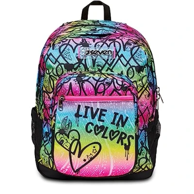 SEVEN Colour Expression Freethink School Backpack Double Compartment Bottle Pocket, Multi coloured, M, Backpack,