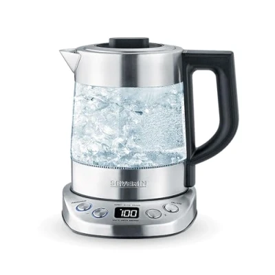 Glass and stainless steel water and tea kettle, Capacity: 1L of water and 0.75L of tea, 2,200W power. Customizable temperature and brewing time Temperature adjustable between 40°C and 100°C in steps of 5°C. “Quick-Boil and Tea” function to start boiling directly at 100°C Built-in ultra-sensitive sensor for maximum temperature accuracy. Glass kettle very resistant to temperature variations “Easy Tea Select” function with 5 preset brewing programs to adapt the temperature and brewing time according to the type of tea. Brewing time: adjustable between 1 and 15 minutes with an audible signal to alert when the brewing time is over. Fine stainless steel tea filter included to infuse tea directly in the kettle. Integrated tea filter handle for safe handling, Weight: 2.72050431308 Pounds, Manufacturer: Severin