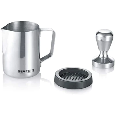 Professional Barista Starter Set - polished stainless steel milk froth jug (approx. 450 ml), solid metal tamper and silicone tamper station Tamper like the pros - for the optimum pressure of the epresso powder Precise pouring thanks to perfectly shaped Barista spout - suitable also for LatteArt Ideal accessory for SEVERIN Espresso Coffee Maker "Espresa" KA 5994, Weight: 0.5 pounds, Manufacturer: SEVERIN