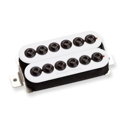 SH-8n Invader Humbucker Neck Pickup 4 Conductor Hookup Cable 3 Ceramic Magnets, Over-wound Coils White Cover with Oversized Black Hex Pole Pieces Impedence: 7.2 k; Resonant Peak: 8 KHz