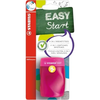 This sharpener is made for left handers. Its ergonomic shape ensures a secure hold. The sharpener is suitable for the STABILO EASYgraph and STABILO EASYcolors.
