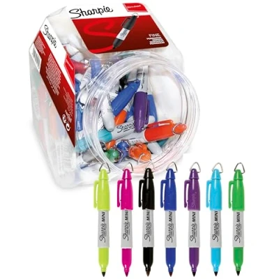 Sharpie Mini Permanent Markers Fine Point Pocket Sized with Key Ring 72 Count in 8 Assorted Colours