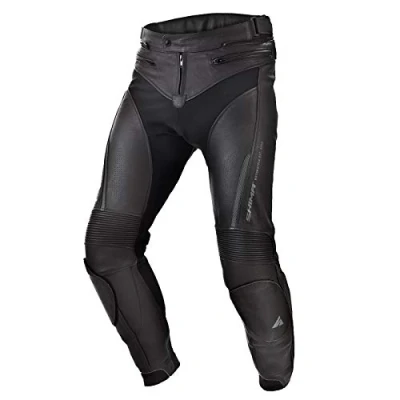 Check the size chart: for the best fit, please check the size chart in the gallery, if you measure between sizes, we recommend ordering a larger size. Protection: knee and hip protectors, additional skin layer in strategic areas with DuoLayer Protection technology Sports – The trousers have areas with super strong Velcro fastener, which are prepared for attaching knee sliders. By default, the space is covered with a layer of leather attached with Velcro. Comfort – elastic leather inserts, ergonomic 3D construction Universal – thanks to the indefinite length of the 360 degree zips, the trousers can be combined with any size of the Chase jacket