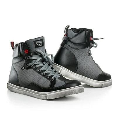 Check the size chart: for the best fit, please check the size chart in the gallery, if you measure between sizes, we recommend ordering a larger size. Protects your foot – reinforced heel, double ankle support and reinforced toe cap with shift pad protect the foot and extend the durability of the motorcycle boots Ventilated – perforated suede on more than half of the motorcycle trainers allows optimal air exchange while driving and allows your foot to breathe on a long day in the office Anti-slip sole – oil-resistant and non-marking rubber sole with embedded steel shaft for added protection and strength Perfect for motorcycle and more – designed to provide maximum comfort and protection on the motorcycle, but look and feel as good as normal trainers; fits well with most motorcycle trousers and motorcycle jackets