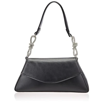 Elegant evening bag Short handle Rhinestone elements on the handle Flap with magnetic closure Textile inner lining with zip pocket
