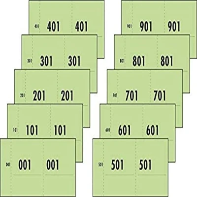 AmazonPractical number pads for many occasions Suitable for coat numbers, cake blocks, tokens, food tokens or for raffles. You will receive 10 blocks with 100 numbers each - in sequential numbering from 1-1000 Thanks to the excellent cut bridge perforations, each sheet and every tear can be separated quickly and cleanly. Made from recycled paper. Made in Germany. Practical number pads for many occasions - indispensable e.g. for wardrobe numbers, cake blocks, tokens, food tokens or for raffles. Made from recycled paper