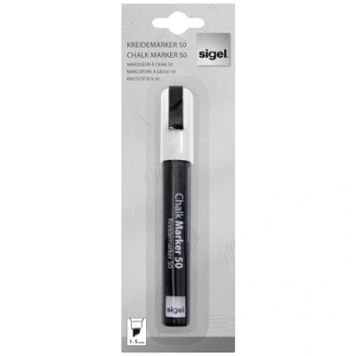White board marker with slanted chisel tip for 1 - 5 mm line width Perfect for dark glass magnetic boards - can also be used as a window paint pen / window marker or for mirrors For decorative use on all smooth, non-porous surfaces Pen contains liquid chalk with extra high coverage Can be wiped dry and damp