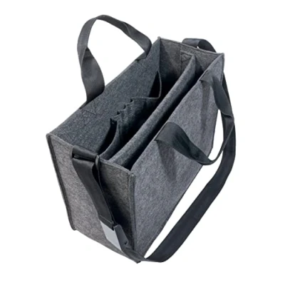 Mobile and practical: the lightweight desk-sharing bag made of felt for stowing and transporting a laptop and office utensils | It gives you easy access to your personal work materials at all times, no matter where you are working. Sturdy and stable: high-quality desk-sharing bag M in the 360 mm x 280 mm x 150 mm format (W x H x D) made of robust, dirt-repellent synthetic felt in Dark Grey, with decorative Grey stitching | Incl | a transparent insert pocket for a personalised label | Stands very securely with or without contents due to its wide base. Practical inner division: 2 large compartments and 5 smaller separate insert pockets - open at the top for quick, easy access to the contents Functional and flexible: an additional elastic strap holds flat items such as a keyBoard, files, thin folders etc | in place Ideal size for all standard office cupBoards and lockers