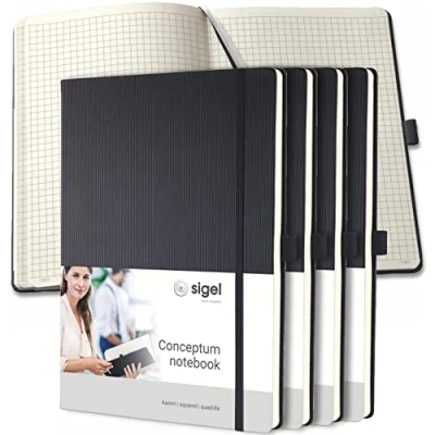 SIGEL CO111 Premium Notebook squaRed, A4, hardcover, Black, 5 Pieces Conceptum