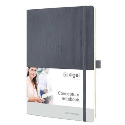 Conceptum business notebooks combine the best design and excellent quality; Many practical features such as the page numbering help you to organize yourself Large notebook, lined, approx DIN A4 (18,7 x 27 cm) in dark grey, with 194 numbered pages (20 of which are perforated sheets) BEST DESIGN: Grooved softwave surface – unique to the touch and also visibly special; With high-quality chamois-colored 80g paper (PEFC-certified) EXCELLENT QUALITY: flexible and hard-wearing softcover; Manufactured using classic thread stitching for durability and perfect flatness of the book PRACTICAL FEATURES: table of content, page numbers, 20 perforated sheets, elastic fastener, pen loop, 2 page markers, quick pocket, archive pocket