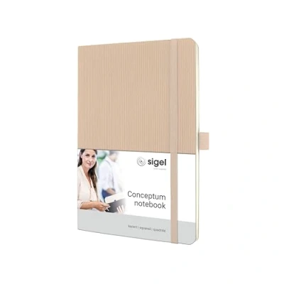 Conceptum business notebooks combine the best design and excellent quality; Many practical features such as the page numbering help you to organize yourself Notebook, squared (5 x 5 mm), approx DIN A5 (13,5 x 21 cm) in beige, with 194 numbered pages (20 of which are perforated sheets) BEST DESIGN: Grooved softwave surface – unique to the touch and also visibly special; With high-quality chamois-colored 80g paper (PEFC-certified) EXCELLENT QUALITY: flexible and hard-wearing softcover; Manufactured using classic thread stitching for durability and perfect flatness of the book PRACTICAL FEATURES: table of content, page numbers, 20 perforated sheets, elastic fastener, pen loop, 2 page markers, quick pocket, archive pocket