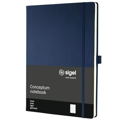Conceptum business notebooks combine the best design and excellent quality; Many practical features such as the page numbering help you to organize yourself Large notebook, lined, approx DIN A4 (21,3 x 29,5 cm) in midnight blue, with 194 numbered pages (20 of which are perforated sheets) BEST DESIGN: Grooved softwave surface – unique to the touch and also visibly special; With high-quality chamois-colored 80g paper (PEFC-certified) EXCELLENT QUALITY: stable and hard-wearing hardcover; Manufactured using classic thread stitching for durability and perfect flatness of the book PRACTICAL FEATURES: table of content, page numbers, 20 perforated sheets, elastic fastener, pen loop, 2 page markers, quick pocket, archive pocket, adhesive labels for the front cover and spine