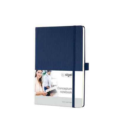 Conceptum business notebooks combine the best design and excellent quality; Many practical features such as the page numbering help you to organize yourself Notebook, lined, approx DIN A5 (14,8 x 21,3 cm) in midnight blue, with 194 numbered pages (20 of which are perforated sheets) BEST DESIGN: Grooved softwave surface – unique to the touch and also visibly special; With high-quality chamois-colored 80g paper (PEFC-certified) EXCELLENT QUALITY: stable and hard-wearing hardcover; Manufactured using classic thread stitching for durability and perfect flatness of the book PRACTICAL FEATURES: table of content, page numbers, 20 perforated sheets, elastic fastener, pen loop, 2 page markers, quick pocket, archive pocket, adhesive labels for the front cover and spine