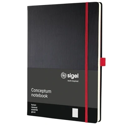 SIGEL CO660 Premium Notebook squaRed, A4, hardcover, Black, Red Conceptum