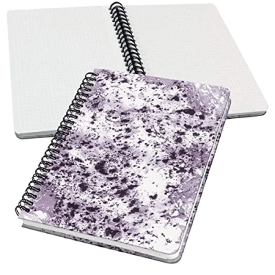 Spiralbound notebook "Violet Marble Basic" hardcover with matt finish | With Black spiral binding - in purple and White colors Format approximately A5 (16.2 x 21.5 cm), dotted, 120 pages (perforated) White paper 100g, FSC certified (International organization that guarantees the respect of ecological and social standards in forest management) Special features: little pouch for storing papers, all sheets are perforated and can be detached - this notepad opens completely flat (360° opening) Ideal for making an original and personal gift to friends, friends, relatives, loved ones | This notebook is very useful to record notes, family memories, reflections but also to draw, make sketches, create a bujo (bullet journal) or make calligraphy (handlettering)