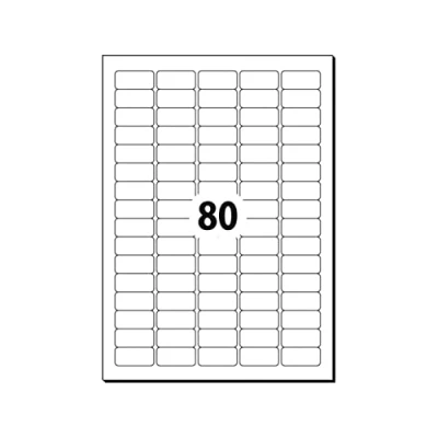 2000 White labels with rounded corners on 25 A4 sheets for professional, efficient and temporary labelling Label size: 3,56 x 1,69 cm | 80 labels per A4 (21 x 29,7 cm) sheet Can be cleanly removed without leaving any residue - ideal for temporary use or for labelling that is changed frequently Clear print image and perfect protection for the machine thanks to the safety margin on all 4 sides Suitable for all inkjet and laser printers and copiers