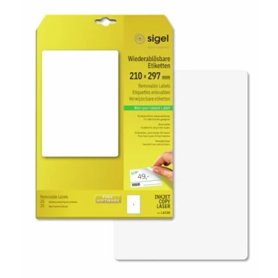 SIGEL LA230 Universal Removable Labels, 21 x 29,7 cm, 25 lbl equal to sheets, White