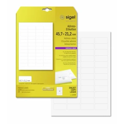 SIGEL LA315 Universal Address Labels, 4.57 x 2.12 cm, 1200 lbl equal to 25 sheets, White