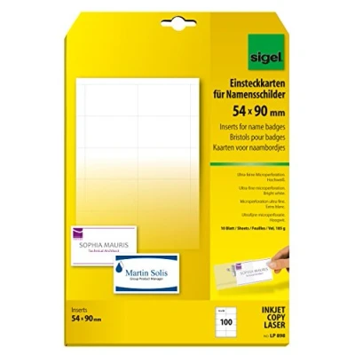 SIGEL LP898 Inserts for Name Badges, 5.4 x 9 cm, White, 100 Pieces equal to 10 sheets