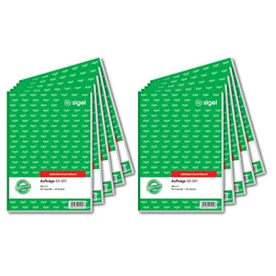 Self-copying order form with coloured copy (yellow), format A5, in practice-oriented, clear design With signature field for the customer, 1st and 2nd Printed sheet Each sheet has filing holes and ultra-fine micro-perforation for easy, clean separation Form book with particularly durable special backrest and integrated desk pad for folding FSC certified: high-quality, environmentally friendly paper from responsible sources. Made in Germany