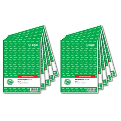 Sigel SD031 Invoices, A5, 2 x 40 Sheet, Non copiable. 1 Copy, 10 Items Pack of