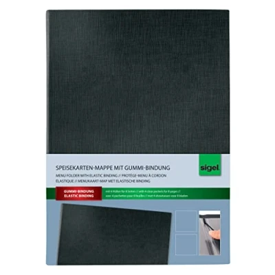 SIGEL SM110 Menu Cover with elastic binding, for A4, Black, 1 Piece