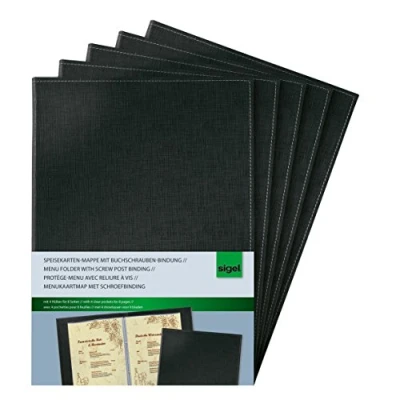 SIGEL SM130 Menu Cover with screw post binding, for A4, Black, 5 Pieces