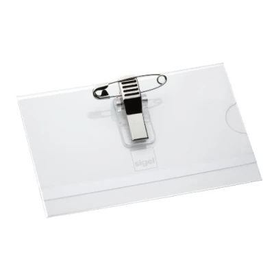 SIGEL ZB200 Name Badges, for 5.4 x 9 cm, with combi clip, transparent, 50 Pieces