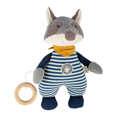 Soft toy and music box with children's melody to fall asleep, beautiful and harmonious colours, pretty raccoon for cradle, baby seat or car - the ideal gift for a birth or christening Also great for playing and cuddling: numerous gripping options such as ears, sleeves and legs – colourful and detailed design; scarf firmly sewn Soothing melody to fall asleep: 1 out of 5 children's songs - randomly selected; mechanical musical mechanism replaceable: additional melodies are available separately from the manufacturer Cuddly figure washable at 30 °C: open the child-safe zip with paper clip and remove the musical mechanism. The musical mechanism must not get into the hands of babies and toddlers and must be put back into the music box after washing Box contents: 1 Sigikid classic raccoon music box; age: 0 - 36 months; highest quality and safety in material and workmanship: tested several times, sustainable and durable; washable at 30 °C, remove music box before washing; item number: 39793