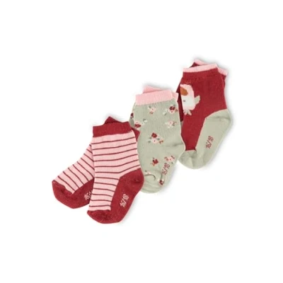 The sock set of 3 from our 'pink cockatoo' collection is available in sizes 25/27 - 31/33 This makes the item special: - 3 pairs of socks: 1 x plain, 1 x floral and 1 x striped; - Elastic, dimensionally stable cotton knit with polyamide and elastane content for a comfortable wearing feel; - Wide elastic cuffs The sock set is made of cotton knit with polyamide and elastane content in green, red - plain, striped, floral Applique, embroidery, print: inlays: Sigikid and size specification; - Inlays: flowers, cockatoo and stripes With great attention to detail, a distinctive design, comfortable fit and high-quality materials - this is how baby and children's fashion from Sigikid convinces. Fashion that is fun and likes to be worn by children; favourite pieces for cuddling, romping and playing
