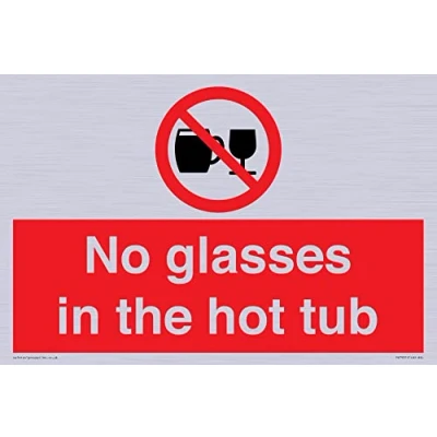 P503 : Do not drink alcohol This sign is made from vinyl silver sticker A4 landscape Sign Text: No glasses in the hot tub