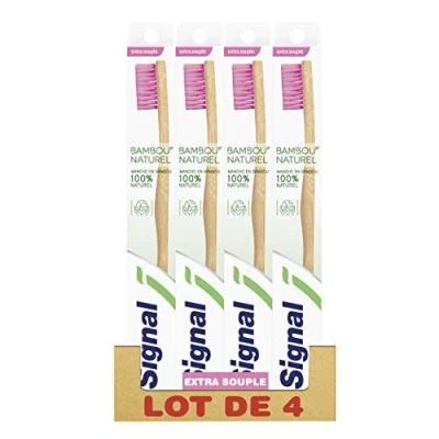 Toothbrushes Set of 4 Signal Natural Bamboo Extra Soft Toothbrush has a 100% natural bamboo handle. A toothbrush with extra soft bristles for clean teeth This extra soft toothbrush has 0.01mm tapered bristles 100% natural bamboo handle and 100% cardboard packaging Signal Bamboo Naturel also comes in soft toothbrush and medium toothbrush.