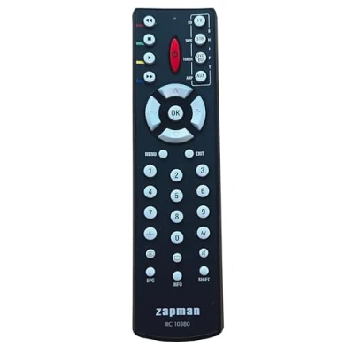Replace the original remote control of your TV with the Silva Schneider zapman RC 10 380/RC 11, the remote control for your satellite receiver or DVB-T/cable box as well as your Blu-ray or DVD/Blu-ray player/recorder. Furthermore, you can operate your audio devices such as CD players, cassette recorders, radio or tuner or an amplifier. As a replacement for the defective or lost original remote control, the Zapman RC 11 is compatible with all popular brands The compact and handy RC 10 380/RC 11 allows easy access to the most important functions. Requires 2 x AAA batteries Pre-programmed universal remote control with 34 buttons 8 devices: TV, STB*, DVD, AUX, CD, TAPE, TUNER, AMP 227,000 database references, 96k chip technology
