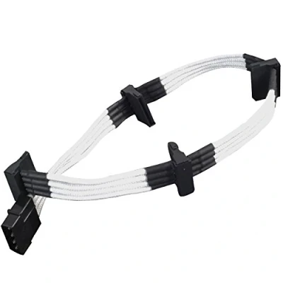 SilverStone SST PP07 BTSW 30cm Molex to 4x SATA Sleeved Extention Cable, white