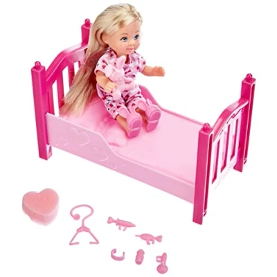 Find your Evi mini doll model 12 cm Evi is sick: she has chickenpox - just wipe a sponge moistened with warm water over her face and her pimples disappear 1 bed and many accessories such as a stethoscope, syringe, and plush are included so you can take care of her, Manufacturer: Simba