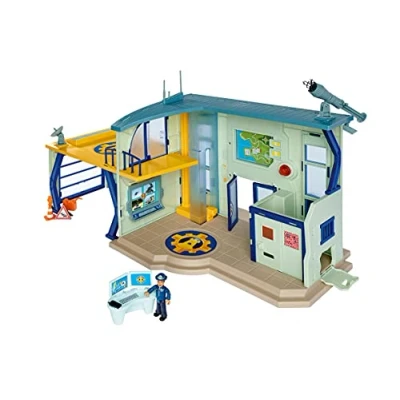 Find the police station of your favourite cartoon "Fireman Sam" With the many functions of play included, you can imagine a thousand and adventures and reproduce your favourite scenes You can immerse yourself in the world of the police with this station consisting of a prison cell with escape hatch, an elevator, a heliport and a parking space for a 4x4. An alarm is included as well as other sound and light functions to liven up your stories! You will also find many accessories as well as a figurine depicting Ravani Rose., Manufacturer: Simba Toys