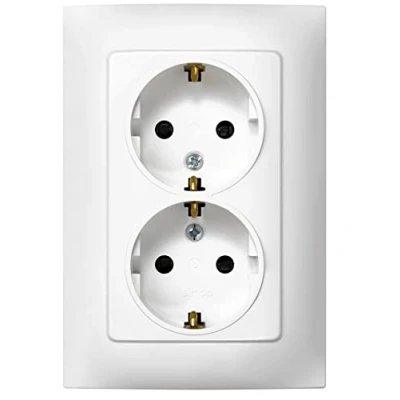 Simon Schuko 10 Series Double Socket 250V 10A Flat and Thin Wall Plugs Easy to Install Includes Frame, Cap Mechanism, Female White