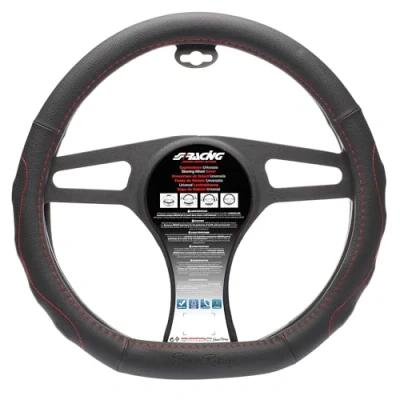 Black color Red stitching For steering wheels with Diameter 37-39cm Faux leather