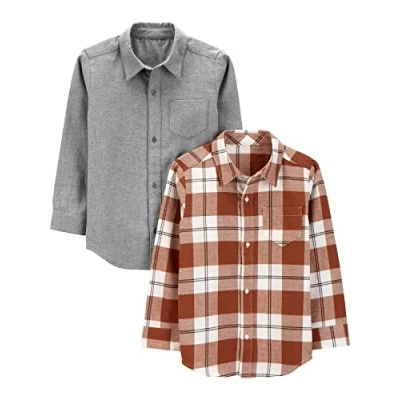 Simple Joys by Carter's Boys' Button Down Shirt (Pack of 2), Grey/chestnut check, 7