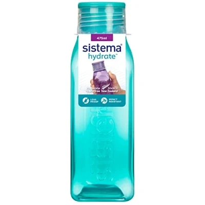 Sistema Square Water Bottle 475 ml Leakproof Kids BPA Free Assorted Colours (Not Selectable) 1 Count