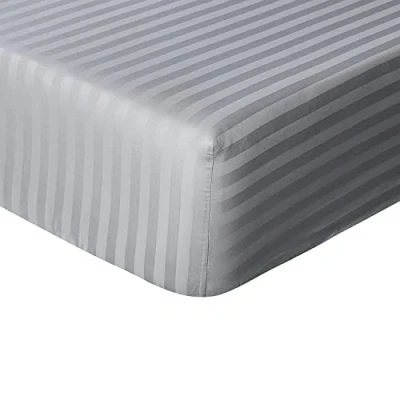 Sleepdown Hotel Quality Fitted Sheet 100% Cotton Satin Stripe Warm Cosy Breathable Super Soft Bedsheet Bed Linen Easy Care 32cm Extra Deep Pockets Grey Single, 5056557514038