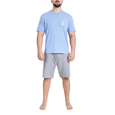Sleepdown Men's Pyjamas Set Pajama, Blue Grey, L, L
